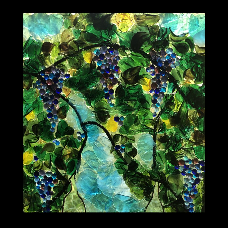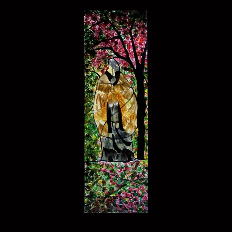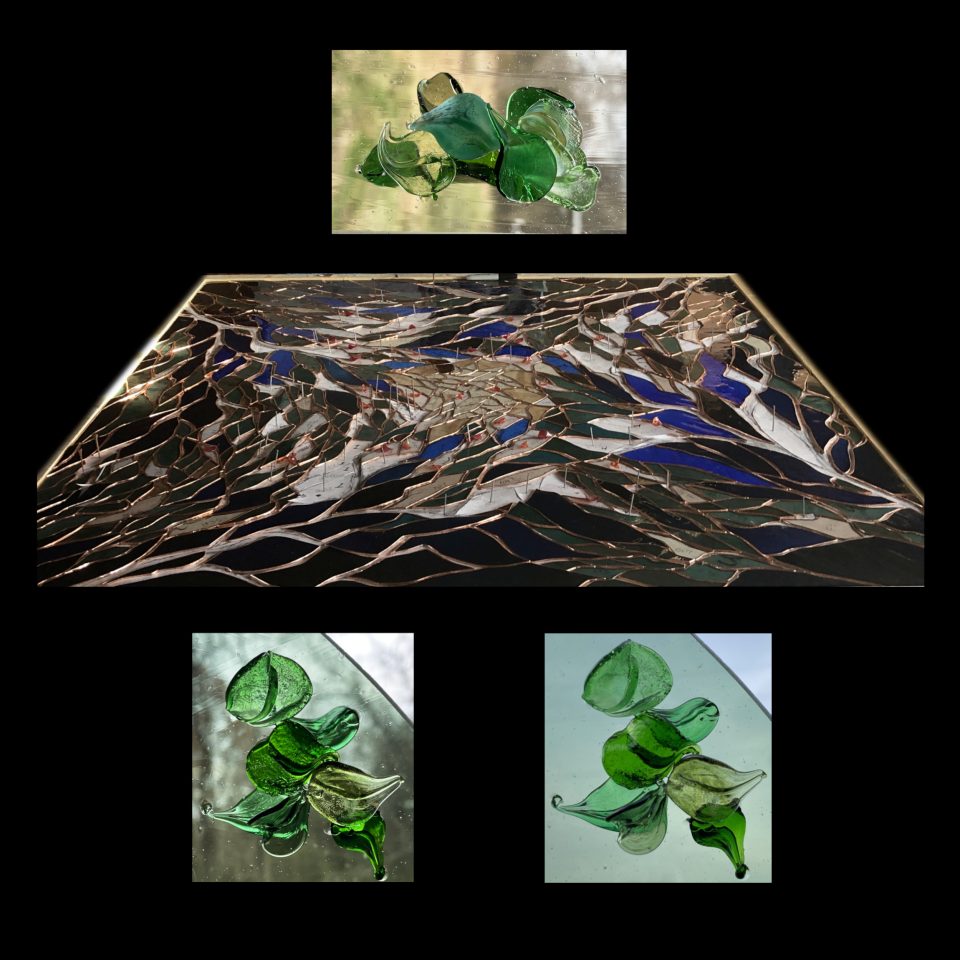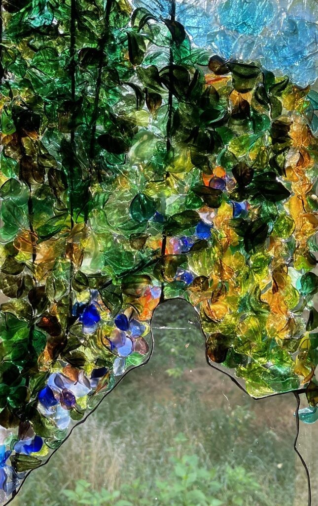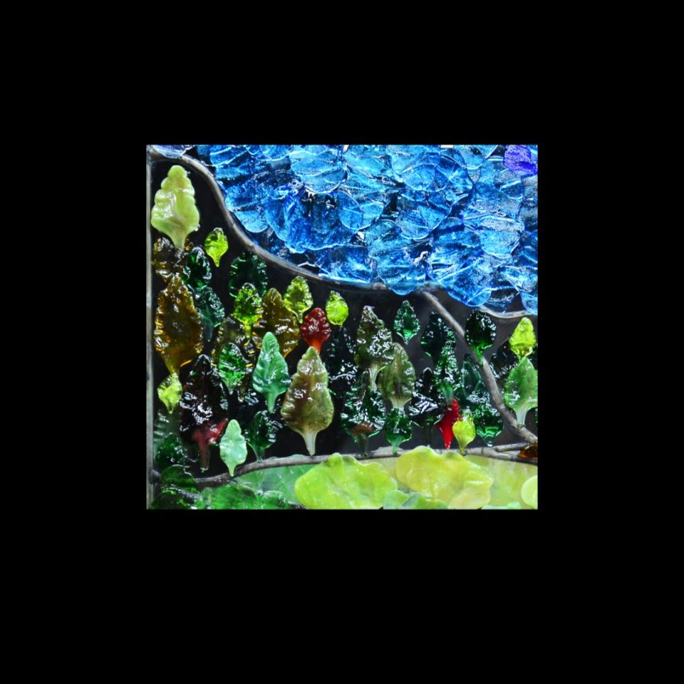Another section from one of our commissions in which we use our “painting with glass” technique – inspired by impressionist paintings with the emphasis on light and color to create the illusion of depth and movement.