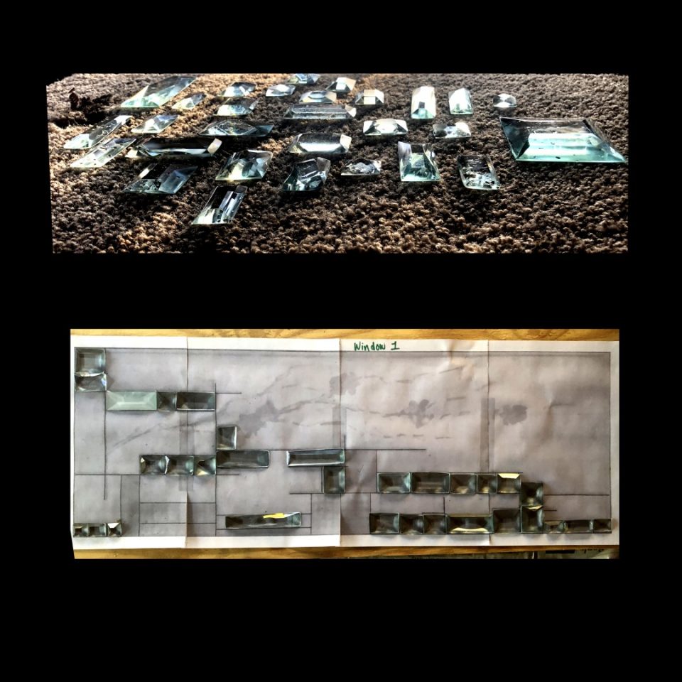 I started by beveling each piece of glass at a very steep angle to capture the light of the sconces on each side.