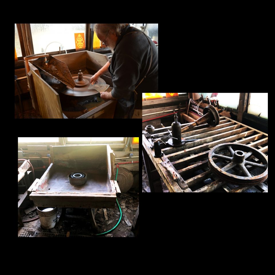 Have you ever wondered what’s on the inside of a 1915 Henry Lang beveling machine? Here you go.