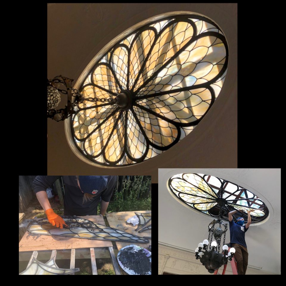 We will disassemble the windows and rebuild them with new zinc, along with the traditional cleaning, puttying, patinaed, and reglazing.