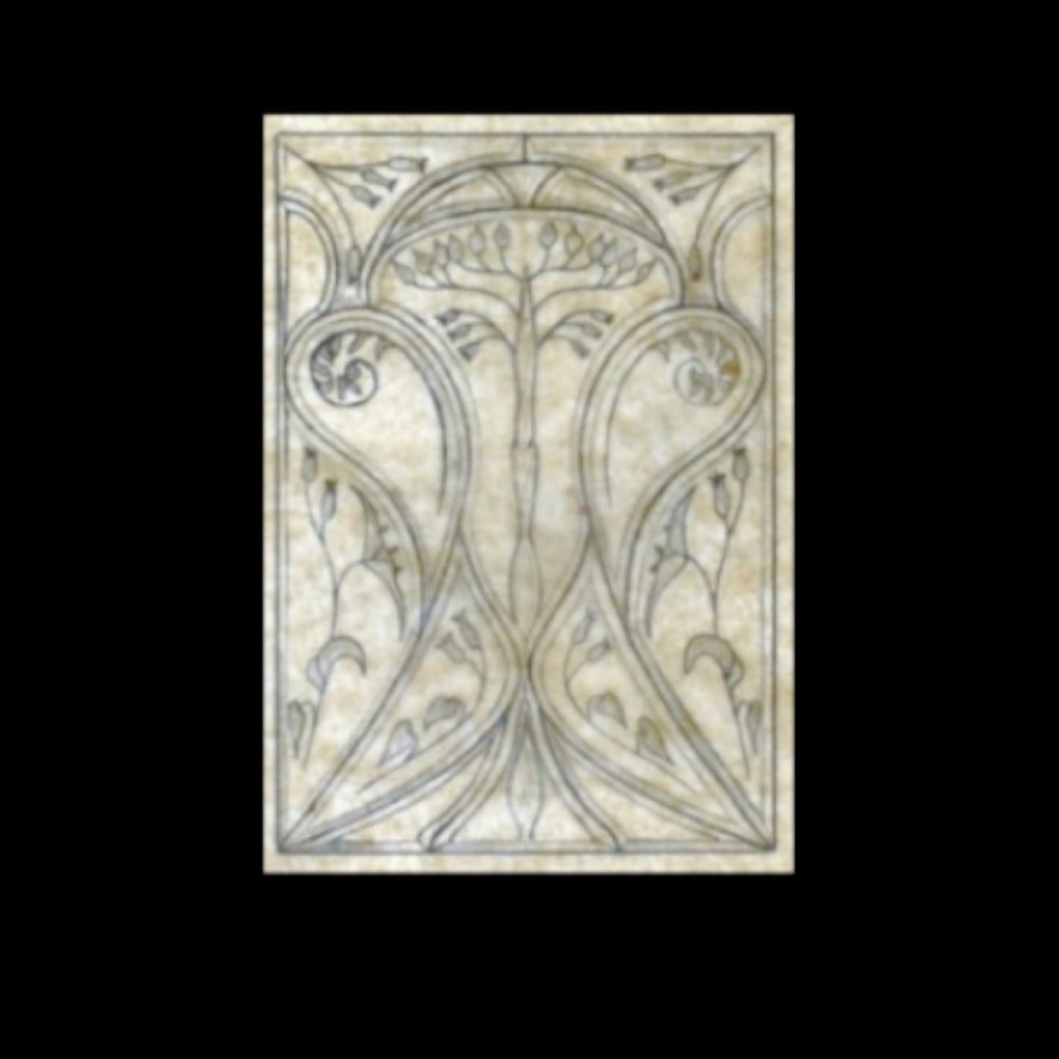 This is an idea sketch I created around 30 years ago for a front door. I had planned on beveling 3/8″ thick glass, into which I would carve the floral design and assemble with heavy zinc came.